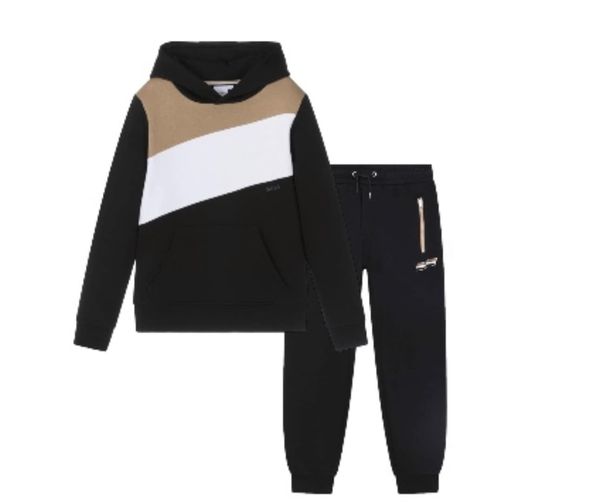 BOSS Boys Black Colour Block Tracksuit
