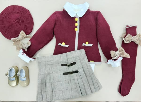 Cesar Blanco Girls Burgundy & Camel Kilt skirt