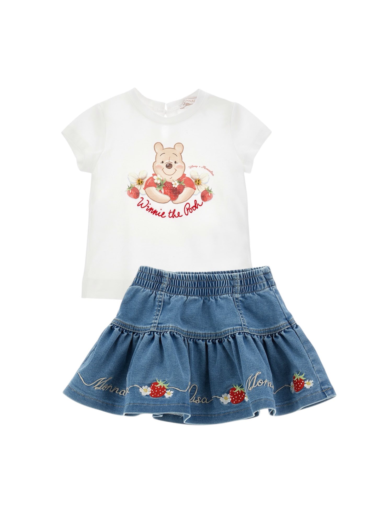 Pre Order Monnalisa Winnie The Pooh White T-Shirt & Denim Skirt Set