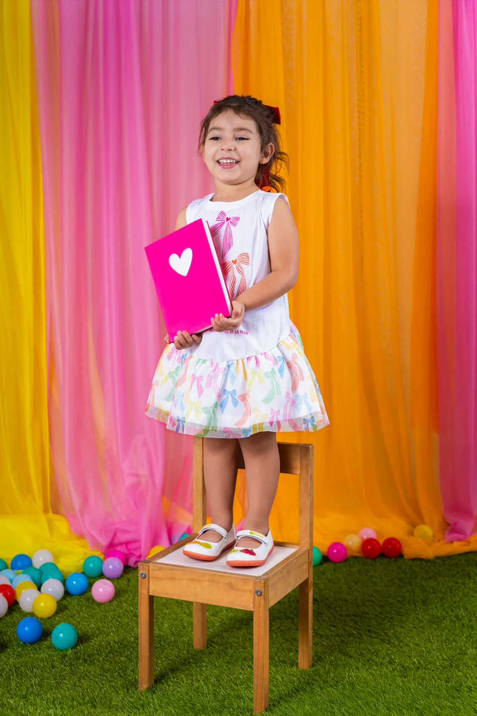 Agatha Ruiz De La Prada JNR White Multicoloured Bows Tie Dress