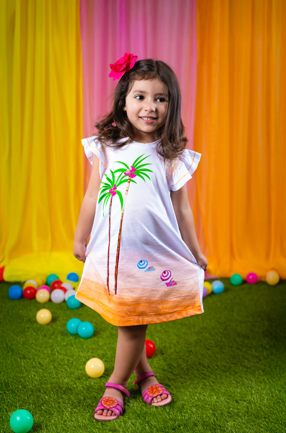 Agatha Ruiz De La Prada JNR White & Orange Palm Trees Dress